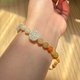The beads shift between honey, soft amber and creamy white tones, like sunlight resting on a quiet afternoon surface. A magnolia charm finishes the piece, adding a gentle, peaceful touch to the overall look.