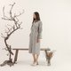 - 特殊設計:領口綁帶造型、門襟特殊排釦、腰圍抽繩條帶及抽皺設計、特殊袖型剪接裁片、側口袋