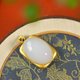 **〔 簡介 〕:**一款非常精緻漂亮的羊脂玉18k金蛋面吊墜,雕工精緻,上身簡單大方,尺寸約:28×20.2×12.2mm,重:9.9克。附送權威國檢鑑定證書,質量保真,支持復檢!
