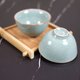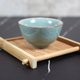 葉老師的哥窯冰裂,燒製手法成熟,透如湖水的藍綠色,配上細緻的開片,在不同光源下時有時閃亮,有時青鬱,呈現土與釉的一種交融感。而細密的開片再均勻與茶湯接觸後,紋理漸深,更顯潤澤。