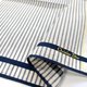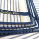 Classic vintage handkerchief. Beautiful navy and white stripe design with yellow accent line, embroidered logo on the corner. Soft woven cotton fabric, elegant and timeless — perfect for pocket styling or as a refined gift.