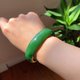 **〔 簡介 〕:天然和田玉 碧玉手鐲,超美辣綠,精品老坑料,收藏級精品7號坑,質地溫潤,版型好,圈口58.8 編號00436 尺寸16.5*8.5