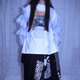 這件上衣具有很強的存在感,所以只需要搭配簡單的牛仔褲或者單穿。