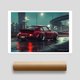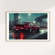 《夜行之紅 Crimson Drift》是一幅關於速度與情緒的城市畫面。紅色跑車停駐在雨後街道,霓虹倒影在地面閃爍,光影交錯出一種冷與熱並存的詩意氛圍。