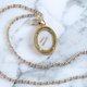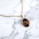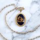 法國1950年代的復古頸鏈,戴著它就像戴著一幅藝術品,金色的橢圓形像個畫框,裏面是鈷藍色的戀人陶瓷畫,鍍金製造,非常有質感。背後寫著Limoges France,就是在法國最出名的陶瓷區所製造的。