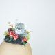 The base is 10cm in diameter, the piece is approximately 12cm in diameter and 10cm high. Secures to the hair with a metal hair clip.