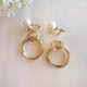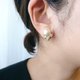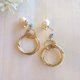 コットンパールとクリスタルを合わせたビジューイヤリングに存在感のあるダブルリングを合わせたデザインです。