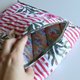 裏地にもブロックプリントの柄を配置していて、縁取りの組み合わせもひとつひとつ違っている、全て1点ずつの制作となります。