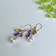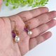 - 【送料無料・一点もの】 大粒アコヤと天然石(アメジスト/レモンスモーキー/ロードライトガーネット)を使った14kgfピアス。 夜のような深い色合いが横顔を艶やかに見せ、揺れるたび光が美しくきらめきます。