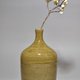 拉坏成型窄口花器,跳刀的花紋配上古青瓷釉色, 一朵小花,一支花器, 頓時,空間瀰漫著舊時光風韻。
