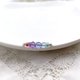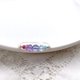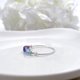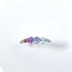 這是一款以丹泉石為中心,將藍色、紫色、粉色系的天然石以漸層方式串接起來的繞線戒指,設計簡約而溫柔。
