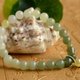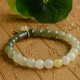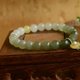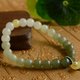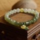 由淺至深的和田玉手串,料子冰冰潤潤,清清爽爽,乾乾淨淨,油潤亮澤。是腕間一抹青靈的風景。透光有少許絮影云紋。搭配一顆小花同色系琥珀金絞蜜圓珠瑪瑙,是新古典同琥珀演繹的東方韻味美學。