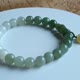 精選天然漸變色和田玉8mm圓珠,白玉、晴水色、湖水色系和田玉。由白玉到淺晴水再由淺入深的湖水色系和田玉,有由冰晴,淺晴,深淺的湖水色珠子水水潤潤,冰冰透透,清清爽爽,圓潤飽滿,如同春天的腳步越來越近,春天的綠意漸漸變濃。在春天的綠韻中一枚小小由琥珀雕琢的小花與手編樹葉子同湖水綠的竹節夾雜其中,是春天送來的幸福與好運。搭配同琥珀色系的琥珀金絞蜜圓珠一顆,和田玉湖水綠小圓珠,皆是純天然材質,無裂無雜,整體冰潤清爽,古典素淨,清雅溫柔,寓意美好,自用送人皆宜,玉體觸感冬暖夏涼,長期佩戴可感受玉石與體溫交融的微妙變化。色澤猶如春日的各種綠意,既可作為日常祈福之物,亦是彰顯文化品位的雅器。