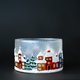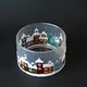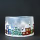 Hand-painted glass centerpiece. Winter Snow Town design. Suitable as a tealight candle holder, candy holder, a winter table decor. Iridescent frost effect, snowing, colorful houses, winter trees, reflex show effect. Very attractive and captivating glass piece, perfect and unique gift.