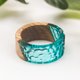 戒指由橡木和藍色珠寶環氧樹脂製成。