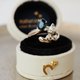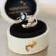 深い湖の底をのぞき込んだようなブルーグリーンのサファイアに、そっと寄り添った猫のリングです。
