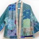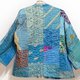 女裝 手工刺繡絲質外套 印度絲綢 紗麗拼接長袖拼布外套-藍色花朵