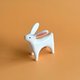 - 手工製作的陶瓷白兔雕像,帶有粉紅色的耳朵和鼻子