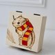 You can choose one of four colors of Hogwarts houses or there’s also an opportunity to order custom colors for the scarf. Leave me a message to let me know which colors you would love to have. I can also make a special engravement on the inner side of the lid if you want to make a memorable gift to someone.