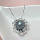 這顆直徑12.2mm大溪地鉑金灰珍珠透著鉑金色優雅,極光微瑕,表面有略有湖水映襯一樣的一絲炫彩。紗織小姐為其配置了自然主義的滿鑲晶體鋯石的花朵配件,將所有的光線反射至中央焦點,佩在頸間,內斂而清新。贈一條銀鏈子,佩戴你也會成為焦點。適合送給心上人哦。