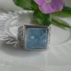 本男戒指屬大克拉天然海藍寶石,裸石形狀像埃及金字塔的造型,純淨海藍色、晶瑩剔透、沁涼如海洋,階梯式切工,俐落的光線反射自信的光芒,充滿男性的霸氣,也含不凡的氣質與質感!