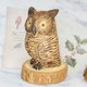 在繁忙、生活緊繃的都市裡,你否想去到一片森林呼吸新鮮舒適的空氣,沐浴在大自然的天然芬多精中,療癒貓頭鷹就為此時此刻的你誕生,藝術家郭國慶每件藝術品主體皆取自於大自然,木雕貓頭鷹是用台灣龍柏(木色局部偏紅)雕刻而成,不上漆皆用燒色方式上色,保留著最天然的香氣,讓你能循著木雕芬芳完全像沉浸在森林裡。