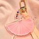 這款「胡桃夾子與嘉麗」匙扣,以夢幻粉芭蕾裙結合童話胡桃夾子小吊飾,點綴柔緞蝴蝶結與金屬扣環,扣於袋中一扣即亮眼。