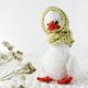 Yarn: Pekhorka "Glamorous" - 35% merino wool, 35% acrylic, 30% polyamide - 50g/175m or Drops Air - 65% Alpaca, 28% Polyamide, 7% Wool, 50g/150m. For legs and beak - 65% acrylic, 30% wool, 5% camel wool 100g / 150m. For the legs and beak, the yarn is suitable for the color with an approximate footage of 100g / 300m. For knitting a hat and a headdress kerchief, yarn with a footage of about 100g / 300m is suitable.