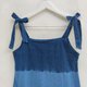 A字型吊带连衣裙,设计甜美又不失个性。肩带可绑蝴蝶结并自由调节长短,增添俏皮感与实穿性。采用柔软的水洗棉布,透气舒适,适合炎热天气穿着。靛蓝扎染工艺,每件花纹都独一无二 💙。此款为 限量版。僅限 1 套。