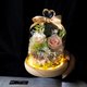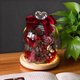 - 把溫柔封進玻璃罩——多色永生花搭配心形裝飾+緞面蝴蝶結,暖光燈座襯出朦朧氛圍。是書桌/床頭的治癒小物,也是送人的溫柔禮。