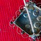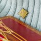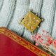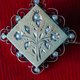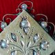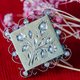 約為1900年生產的這款胸針,實體並不大,卻在這小方塊上盡顯工匠精細工藝。中心以鑿刻的方式描繪出一束花的樣貌,邊緣再延伸出反覆彎曲的線條,中心點與邊緣各使用8顆珍珠鑲嵌,看來這也是經過工匠巧心設計過的。 是一個讓人不斷玩味欣賞的飾品。