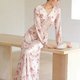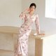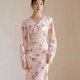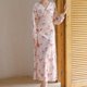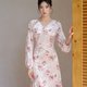 - 【印花修身】新中式復古中國風 絲絨V領長裙