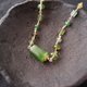 マットなグリーンのネフライト(翡翠)を中心に渋めのグリーンを散りばめた繊細なチェーンブレスレット。