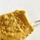・仕立て:ボディ部分は棒針編みで、ポンポンと裾のピコットスカラップ部分はかぎ針編みを使用。異なる技法を組み合わせることで、立体感と温かみのあるデザインに仕上げています。