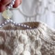 ・ケーブル模様の間に施されたポンポンと、裾のピコットスカラップが可愛らしさを引き立てます。