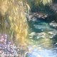 Step quietly into a world where nature hums in gentle whispers, where the soft sigh of wind brushes through delicate leaves and the sun filters through a canopy of green and gold. “Whispers of a Hidden Stream” is a soft pastel painting that captures this hidden sanctuary, a moment suspended in time where the river flows like liquid light, carrying reflections of sky and blossom along its surface. Hints of luminous greens, tender lilacs, soft blues, and golden warmth mingle together in an impressionistic symphony, creating a place where the heart can pause and breathe.