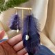 垂綴珍珠海軍藍鵝羽毛耳環