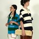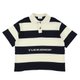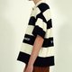 ボーダーのコットン ニット ラガーシャツ。 ・ハイゲージ/薄手のサマーニット ・ポロカラー ・2つボタンのプラケット ・前と後ろにジャカードのロゴグラフィック
