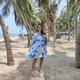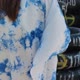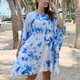 圓領、寬袖、寬鬆的連衣裙。夏天穿的薄棉布很好。迷你連衣裙,可愛的設計,炫酷的靛藍染色圖案。