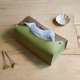 可橫式擺放,亦可立著擺放,面紙盒的背面也有縫線細節可做為工藝品展示。