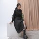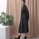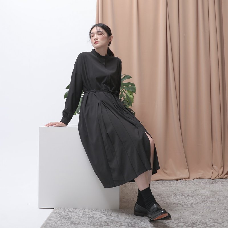 - 不對稱V型褶片與百褶、造型暗門襟、修身剪接裁片、雙綁帶設計、兩側具口袋。