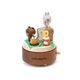 - 【熊大美味派對多旋轉音樂盒】旋轉發條,開啟開關,熊大、兔兔與莎莉隨著音樂轉轉轉,準備好迎接歡樂的一天!Wooderful life 音樂盒使用日本 Sankyo 機芯,以發條動力設計帶動音樂盒上的動態故事。側邊設有開關停止鍵,想停即停。