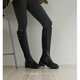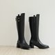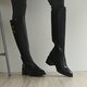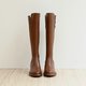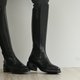 - /圓頭寬筒高跟及膝靴/ 細緻的牛皮皮質 兩側繃帶更顯瘦腿型 粗跟舒適好走視覺上也不厚重 搭配簡約的連身衣和長褲 簡單的二件式穿搭 上班和約會都復古時髦 貼合的筒圍除了 更拉長身型線條的身高