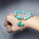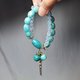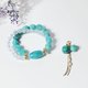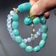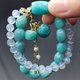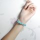 嚴選湖水綠紋天河石(亞馬遜石)、淨體藍暈月光石,編製華美2股鍊身(2股寶石鍊可依喜好、鬆緊自行調整成平行、或旋繞配戴),優雅環繞手腕,風韻細緻、華麗貴氣,上手冰涼滑順、能量溫和而舒適,