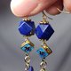 尺寸:青金石切面珠高約8.8mm,花朵寬約12.5mm,整體含耳鈎總高約9cm,**可改夾式,但因寶石體裁偏大、重量略重,改夾式不一定夾得住喔^^**。