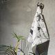 小方巾圖案面為二重紗,背面為薄款毛圈材質,雙面布料手工車縫結合,親膚柔軟,可隨身攜帶,也可當家事巾,貼心縫上掛耳,方便吊掛晾乾。