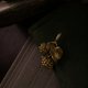 吊墜的主題簡單可愛,構圖上卻立體豐富,兩顆飽滿的莓果上下相依且前後交錯,搭配右上方一葉蜷曲的葉片,整體結構充滿層次變化。