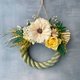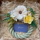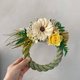 花材:日本進口不凋玫瑰、不凋高山羊齒、索拉非洲菊、滿天星、金合歡等
