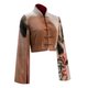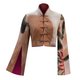 這件優雅的長衫款真絲露臍裝簡直是行走的藝術品,將香港藝術館館藏無價畫作、世界聞名的中國近現代藝術大師齊白石所作《延年壽酒》的細節展現得淋漓盡致。SPARKLE by KAREN CHAN標誌性雙層羊皮旗袍領內層是紫色,獨特的水袖亦為這件新派長衫款露臍裝增添別樣魅力。