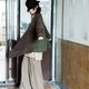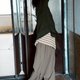 這件的布料摸起來很滑順,穿上去垂感超好,整體線條會很順,走動時會帶出很自然的垂墜線條